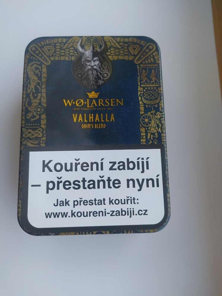 W.O. Larsen Valhalla je limitovaná edice dýmkového tabáku z roku 2026, inspirovaná severským dědictvím a mýty o Odinovi. Jedná se o směs Virginie, Perique, Black Cavendish a Dark Fired Perique, která má středně plnou a komplexní chuť s pikantními a aromatickými tóny. Tento tabák je lisován do vloček, poté zpracován do medailonků a nakonec rozmělněn pro snadné plnění dýmky.